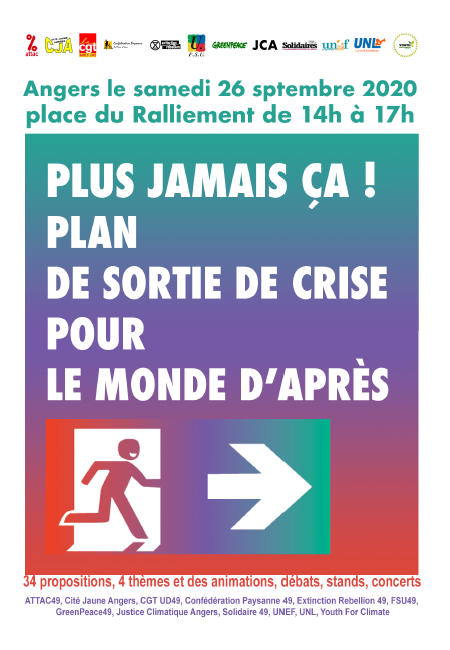 Jeudi 15 octobre 2020 à 20h à la Bourse du travail d’Angers (14 place Imbach).