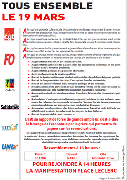➢ À ANGERS aux rassemblements à 13 h le CHU et la Cité Administrative pour un départ collectif en manifestation à 14 h Place Leclerc.