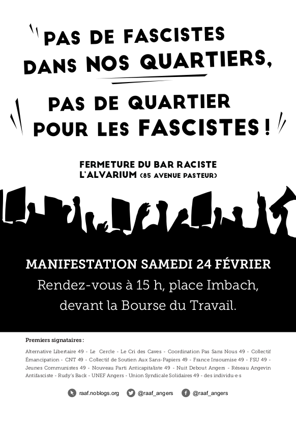 Rdv à 15h, samedi 24 février, place Imbach, devant la Bourse du Travail.