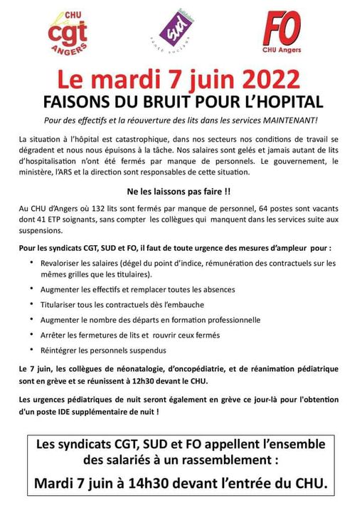 2022.05.23. communiqué presse FO CGT SUD - Grève en Pédiatrie